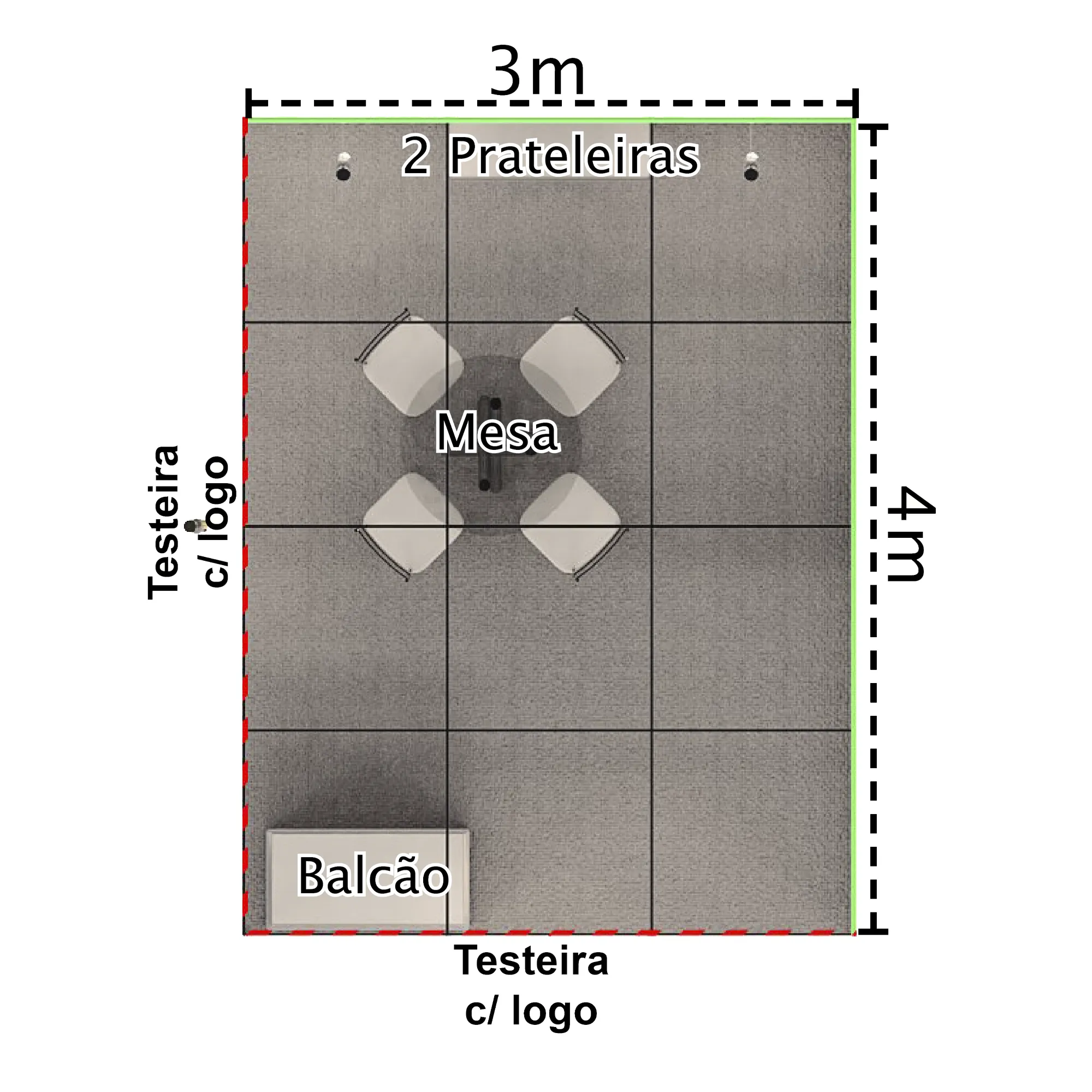 1 x Balcão de 1m x 0,5m x 1 m com logo aplicado de 0,98m x 0,913m
