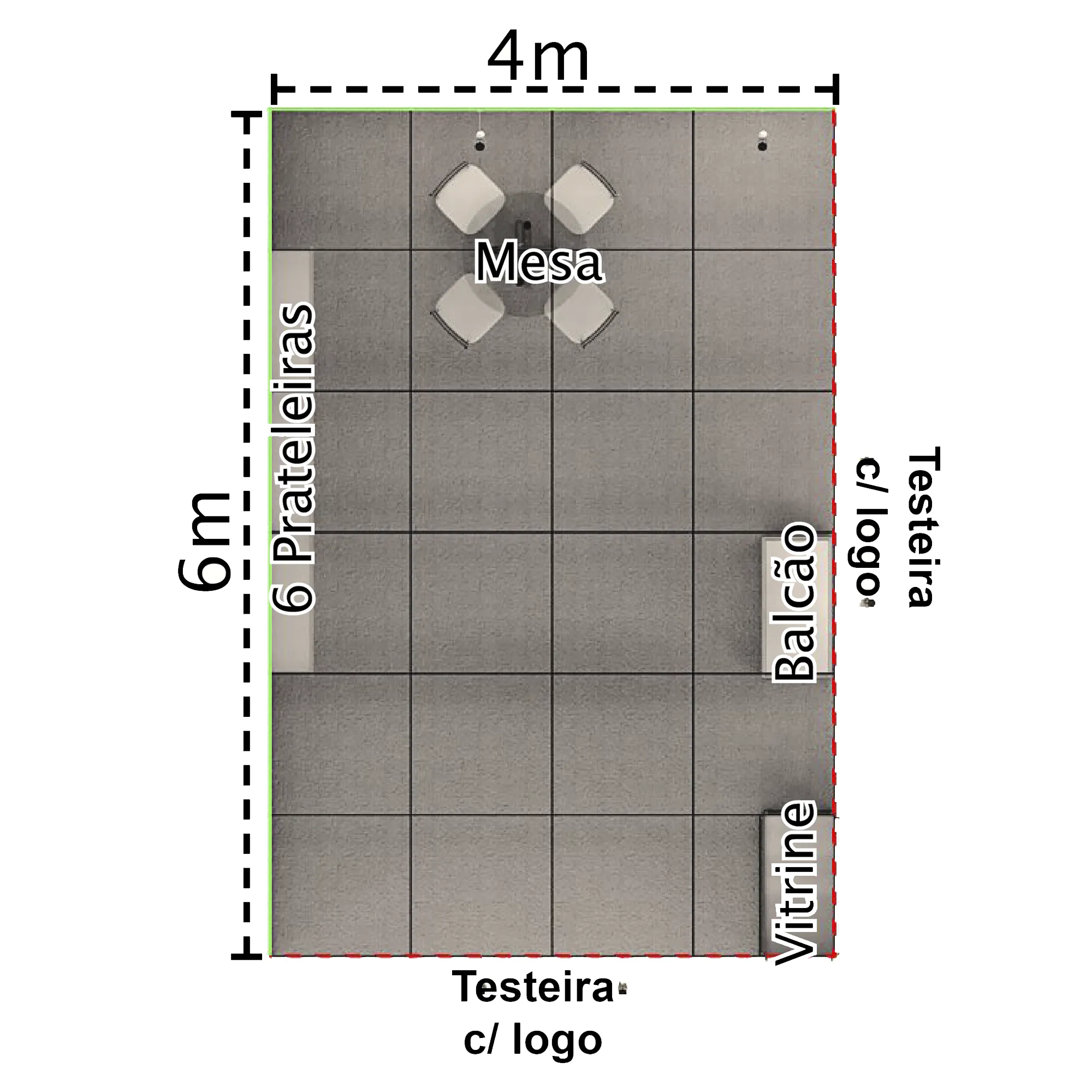 • 1 x Balcão de 1m x 0,5m x 1 m com logo aplicado de 0,98m x 0,913m